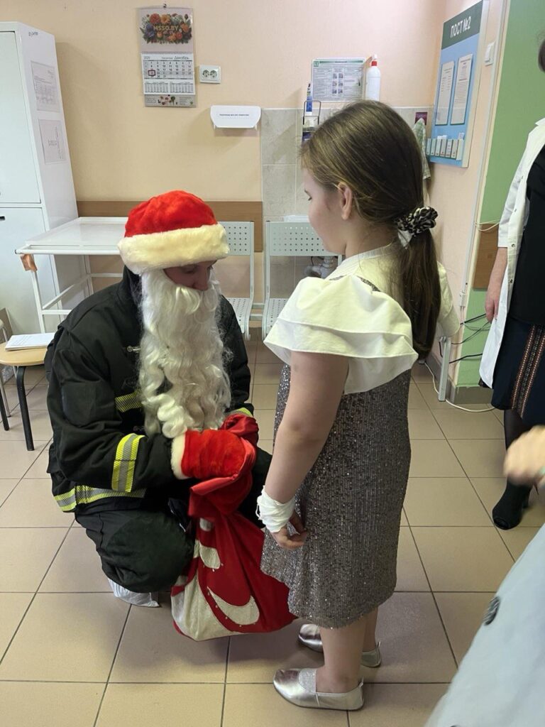 И Дед Мороз у них был необычный — настоящий спасатель РОЧС. Дети с большим удовольствием участвовали в новогодней сказке, радовались и веселились , позабыв о проблемах со здоровьем. И конечно же, каждый ребенок получил подарок. Добрый праздник в больнице для них организовали Белорусский детский фонд, волонтерский клуб «Слон», Минский городской колледж искусств, Октябрьский РОЧС и Октябрьская районная организация г. Минска РОО «Белая Русь». Пусть наши дети всегда будут здоровы и счастливы! Скорейшего им выздоровления!