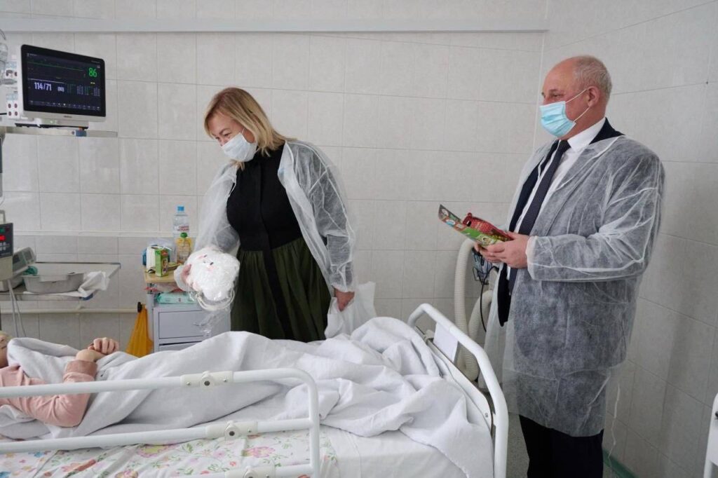 Вместе с директором издательства «Адукацыя і выхаванне» Валентином Яновичем Новогродским и заместителем директора по маркетингу и коммерческой деятельности издательства, главным редактором детского журнала «Вясёлка» Анастасией Викторовной Радикевич поздравили детей с Новым годом, пожелали им скорейшего выздоровления, а также подарили красочные детские книги и сладкие угощения.